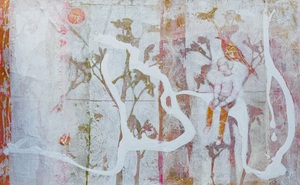 2024Meisje ballonnen acryl mixed media techniek papier stof